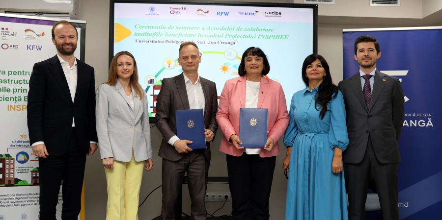 Universitatea Pedagogică de Stat „Ion Creangă” va beneficia de reabilitarea energetică a două blocuri de studii. Ceremonia de semnare a primului acord de colaborare cu instituțiile beneficiare în cadrul Proiectului INSPIREE – Inițiativa pentru dezvoltarea infrastructurii publice durabile prin renovări de eficiență energetică s-a desfășurat astăzi, 16 septembrie.