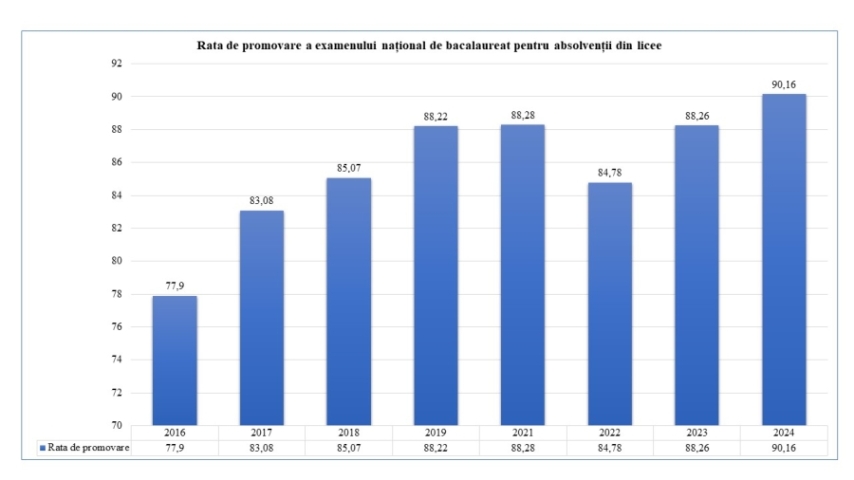Numărul absolvenților care au promovat examenul național de bacalaureat a crescut cu 53 după examinarea contestațiilor și este egal cu 12580. Dintre cei 12580 de absolvenți, 10208 sunt candidați din licee, 1828 sunt din colegii și centre de excelență, 101 candidați provin din universități, 85 sunt candidați înscriși în regim de externat, iar 358 sunt candidați restanțieri din sesiunile anterioare.