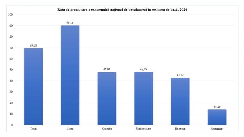 În rezultatul examinării contestațiilor, rata de promovare a absolvenților din licee a crescut cu 0,33 puncte procentuale și constituie 90,16%, comparativ cu 88,26%, de la aceeași etapă, din cadrul sesiunii 2023. Rata de promovare pentru absolvenții din colegii și centre de excelență constituie 47,91%, comparativ cu 45,59%, de la aceeași etapă, din cadrul sesiunii 2023. Pentru candidații înscriși în regim de externat, rata de promovare a crescut cu 0,5 puncte procentuale și constituie 42,92%, iar pentru studenții anului întâi compensator din universități, rata de promovare nu s-a modificat și constituie 48,09%. Pentru candidații restanțieri din sesiunile anterioare, rata de promovare a crescut cu 0,13 puncte procentuale și constituie 14,26%. Astfel, rata de promovare totală a crescut cu 0,3 puncte procentuale și constituie 69,68%, comparativ cu 68,76%, de la aceeași etapă, din cadrul sesiunii 2023.
